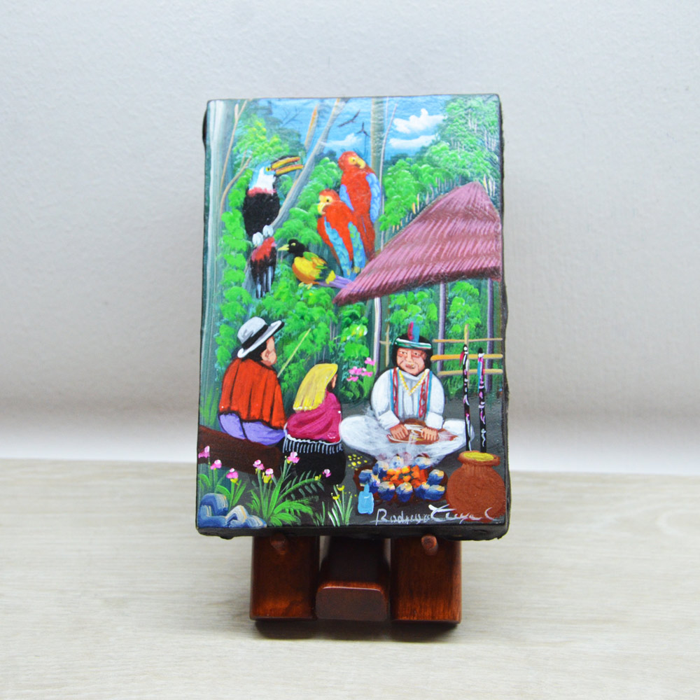 Ideal para coleccionistas, amantes del arte indígena o quienes buscan decorar con identidad cultural, este cuadro es una obra que habla sin palabras, un testimonio visual del alma del Ecuador profundo.